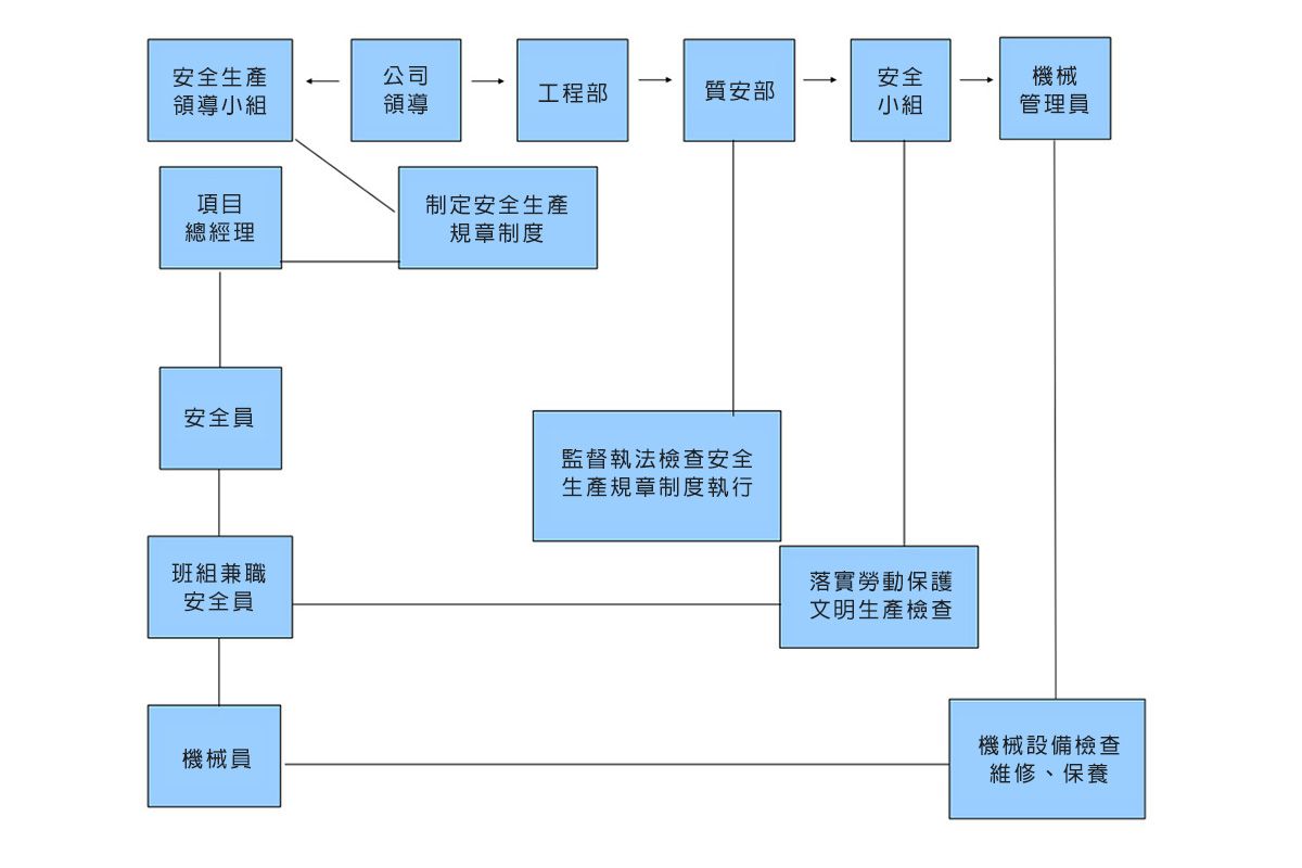3. 質量保證體系組織機構: 為確保工程質量目標的實現,必須建立、健全、完善質量保證體系組織機構。在貫徹執行ISO9001標準的同時,按程序文件要求推動質量保證體係正常有效地運行。